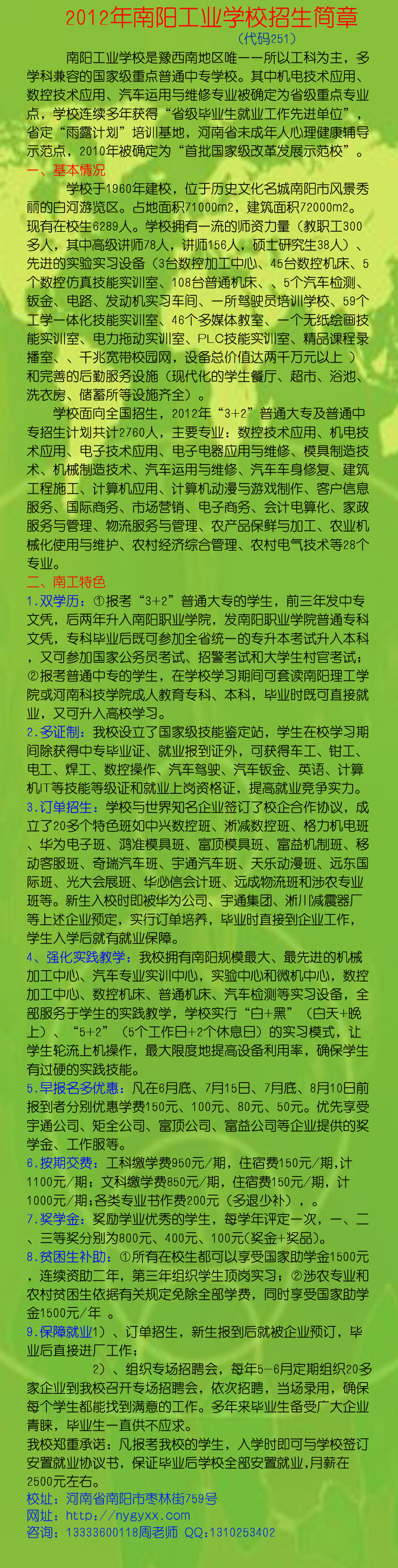 南陽(yáng)工業(yè)這校招生簡(jiǎn)章(圖)